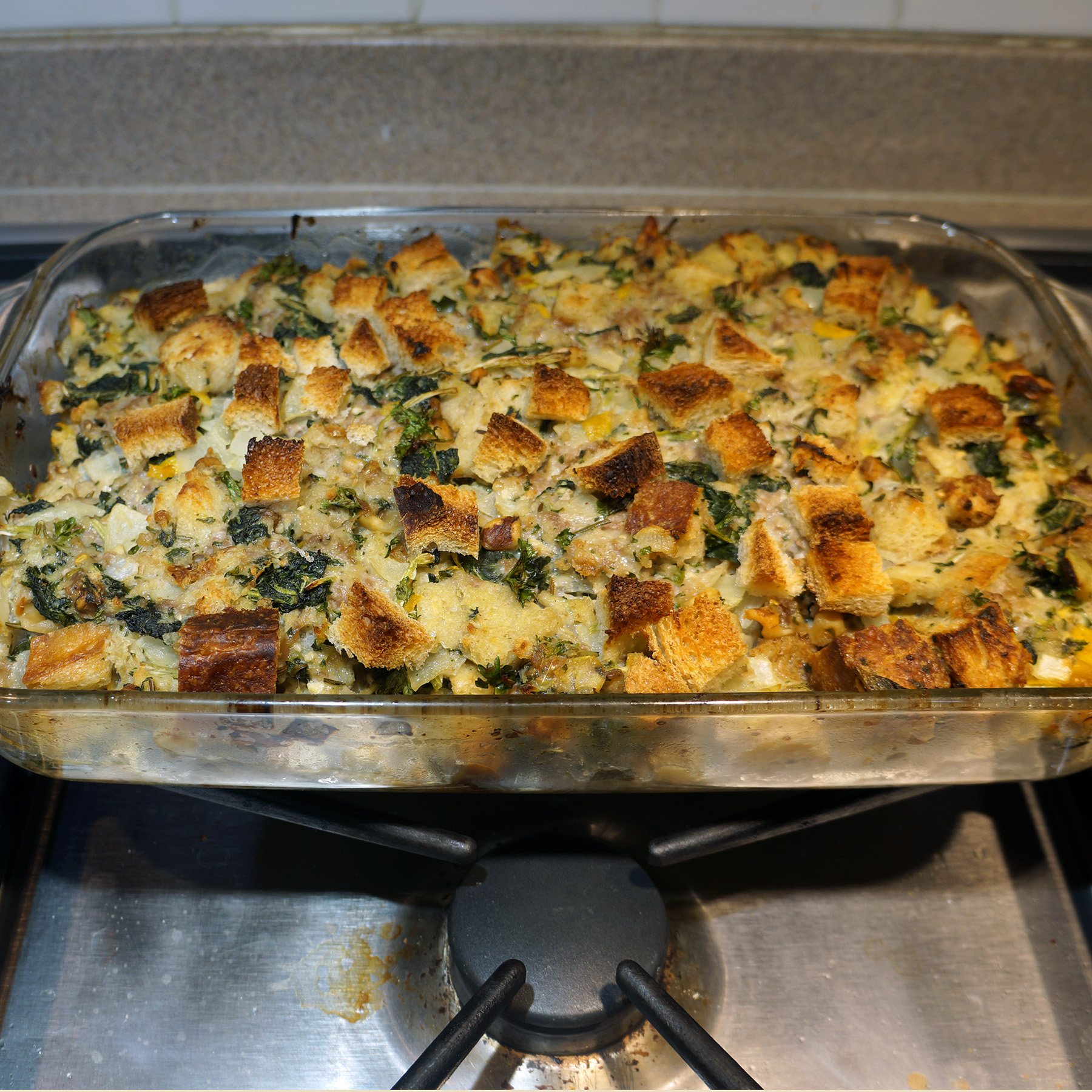 0.00 Facebook Pork Sauces and Dressings Side dish Tuscan Sausage Kale and Ciabatta Stuffing By Ian Cooks December 2, 2019